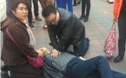 老人晕倒路边 好心医生按压心脏救助