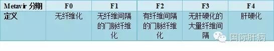 表1. Metavir肝活检评分系统肝纤维化分期定义